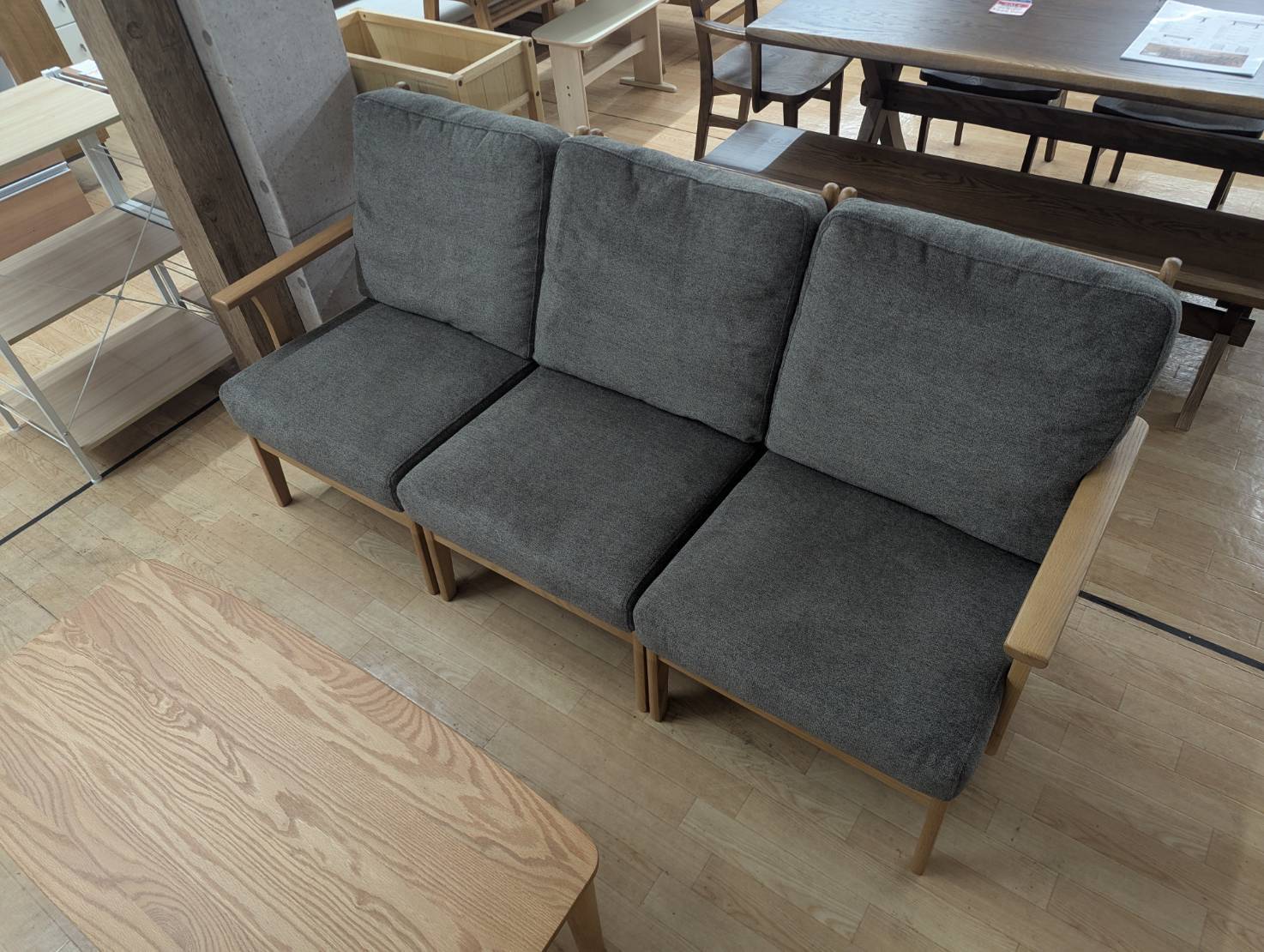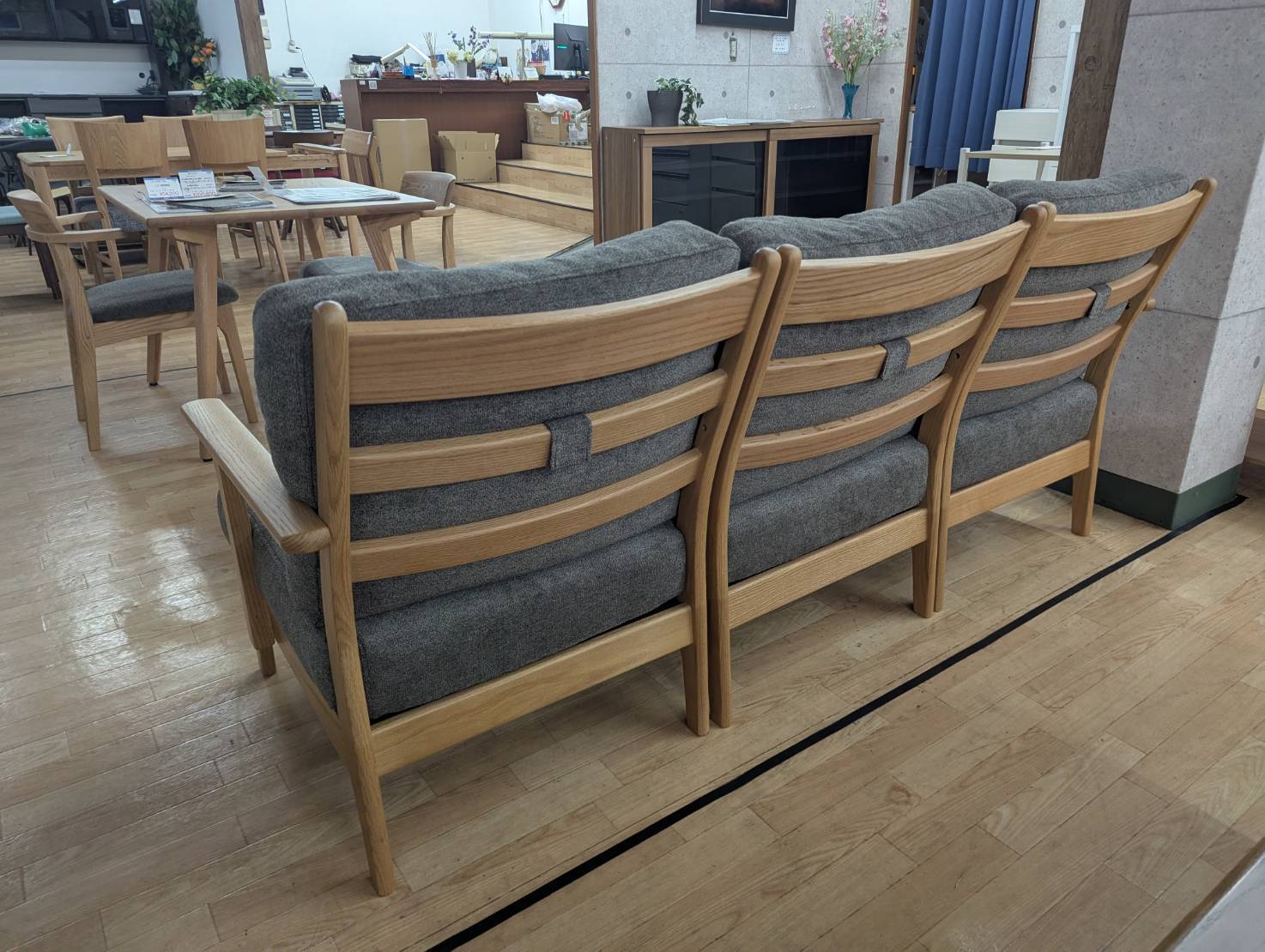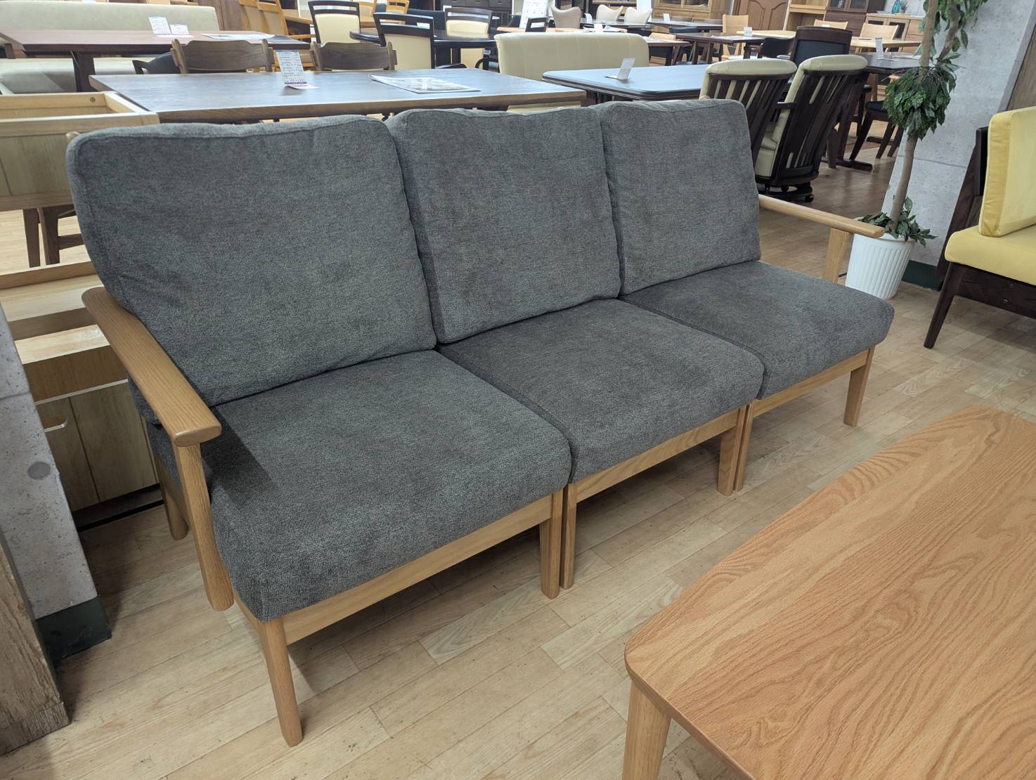 アウトレット 木製フレームソファ3点セット レッドオーク無垢