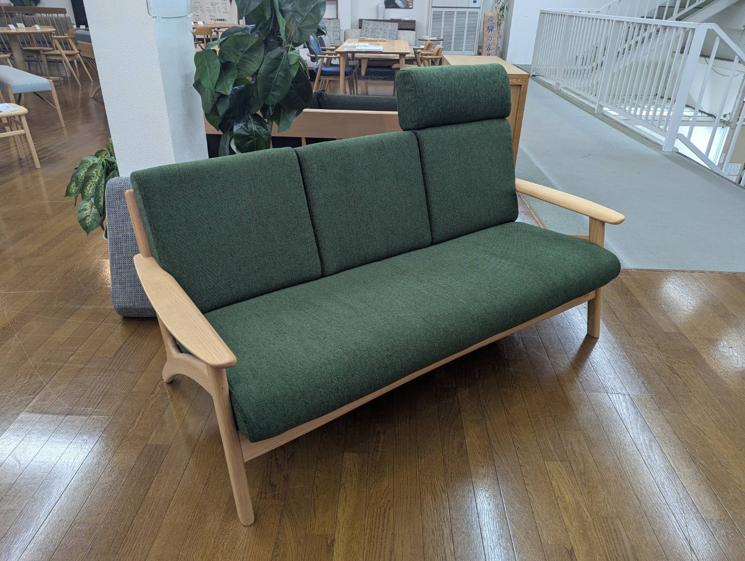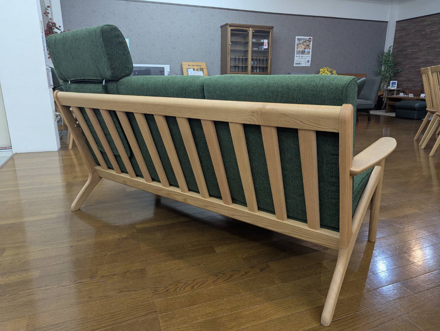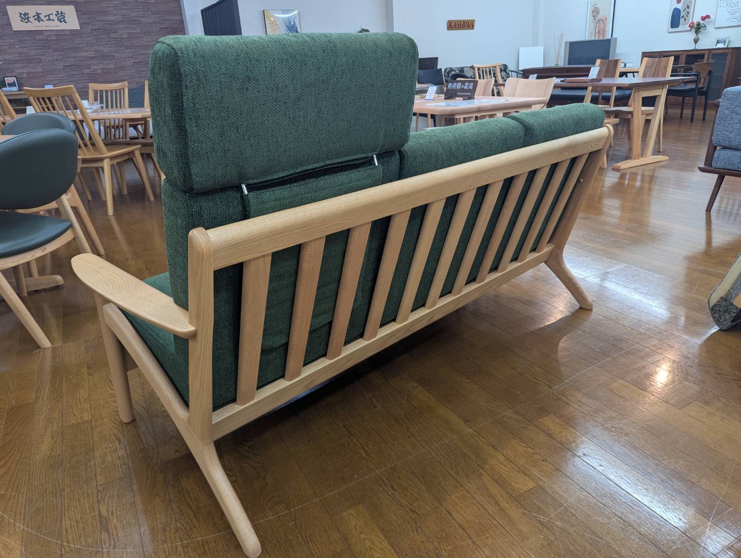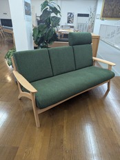 アウトレット 木製フレーム3Pソファ オーク無垢 ヘッドレスト1個付き