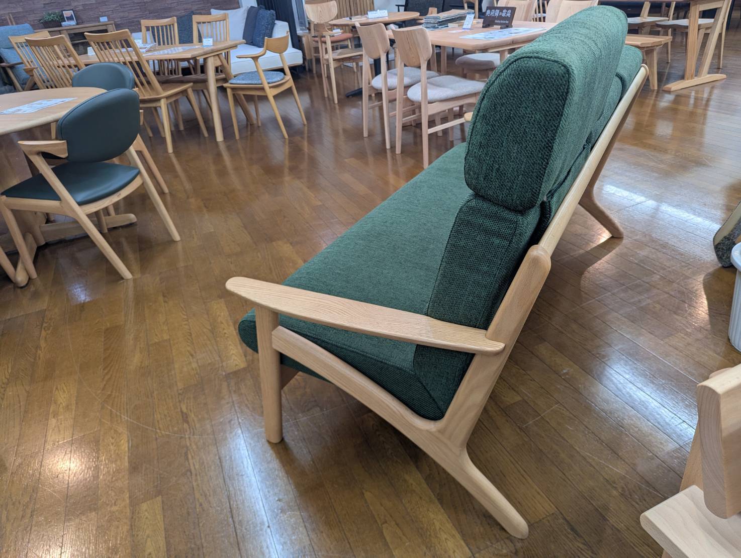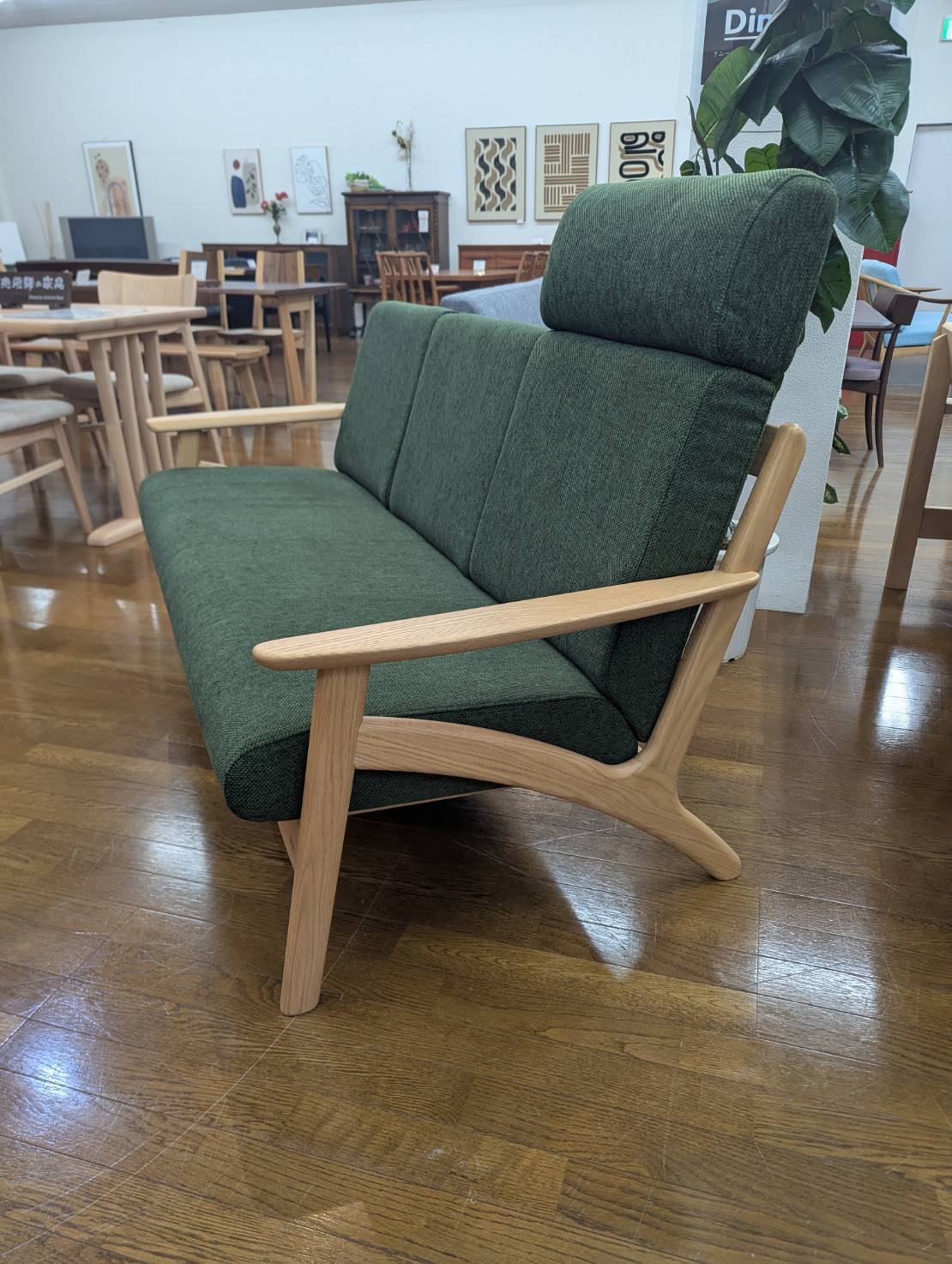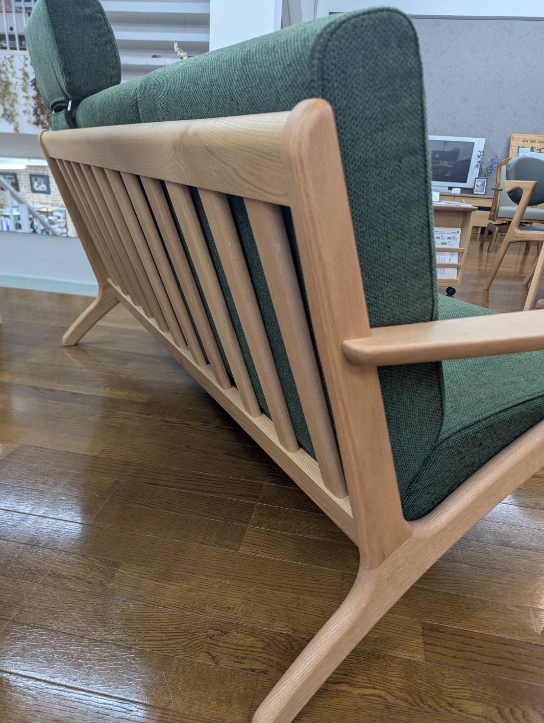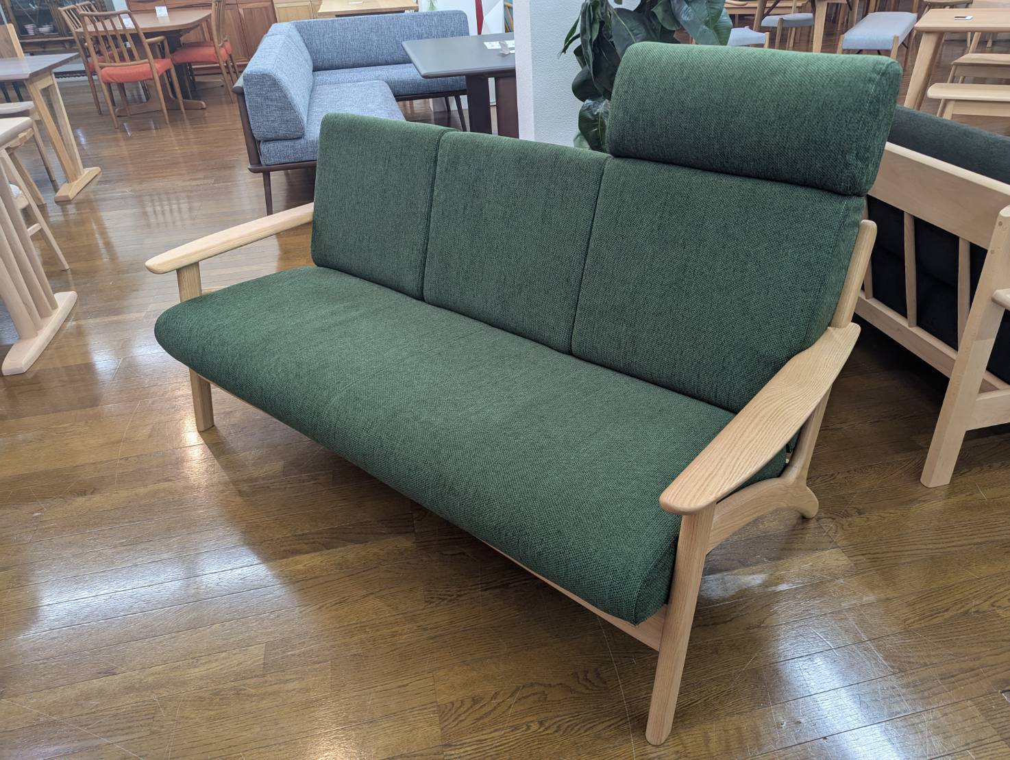 アウトレット 木製フレーム3Pソファ オーク無垢 ヘッドレスト1個付き