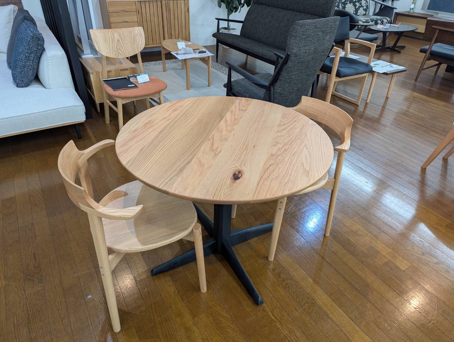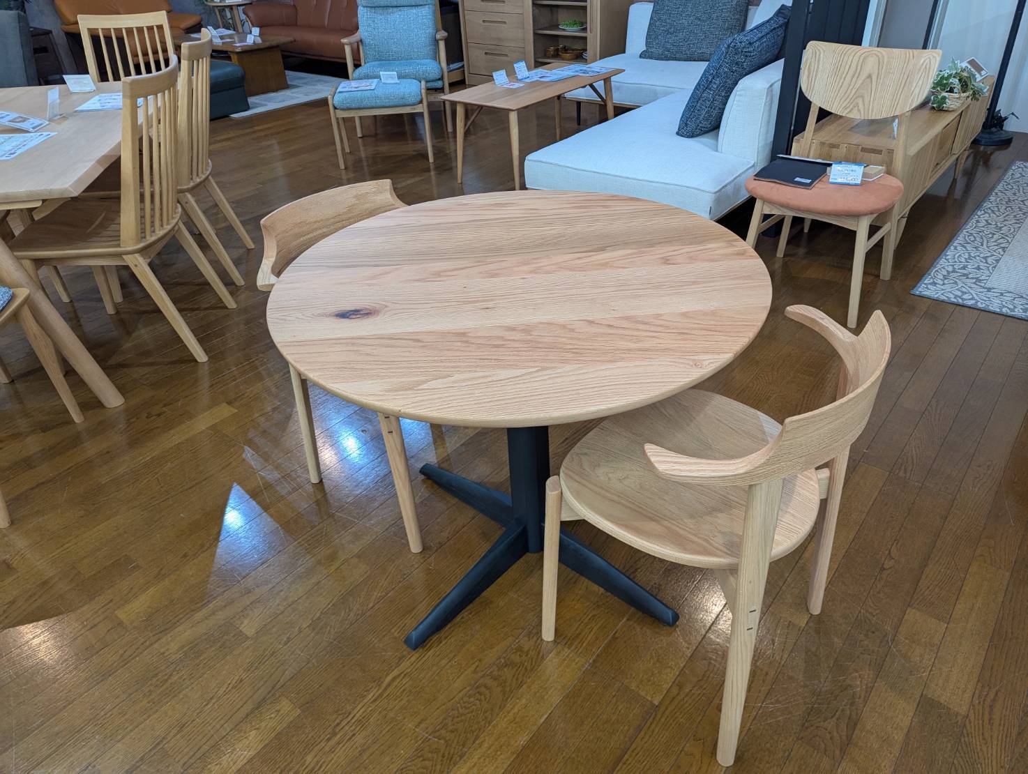 レッドオーク 円形ダイニングテーブル 直径90cm 商品番号7