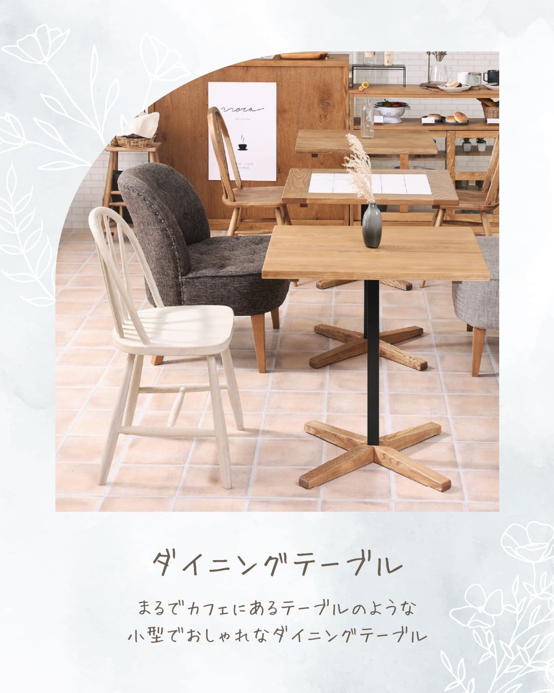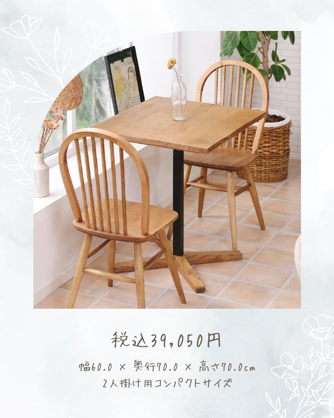 商品情報 天板にはアッシュ材天然木を使用したナチュラルテイストなカフェテーブルです。幅60㎝で一人暮らしでの使用にもちょうどいいサイズ感です。
